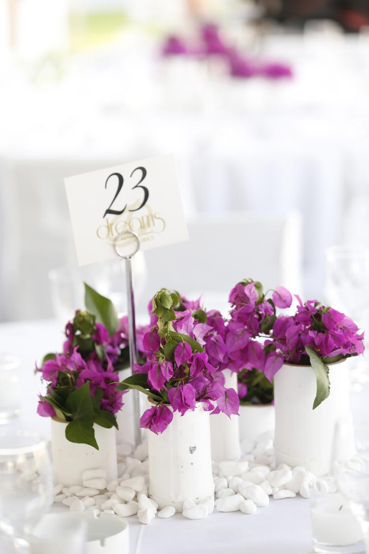 “All-white wedding on the beach with beautiful lounge feel décor, made the guests bonding to the sound of live jazz music in the background.”
